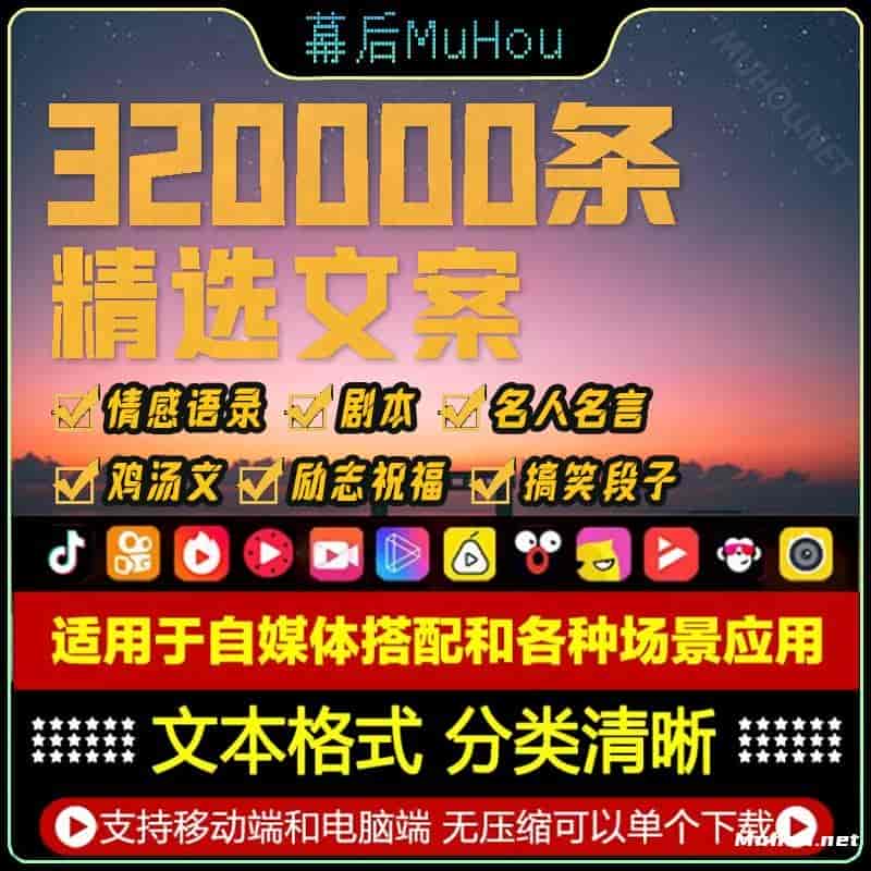 淘宝爆款《320000条精选文案》,汇集32万条优质金句! 3.88G