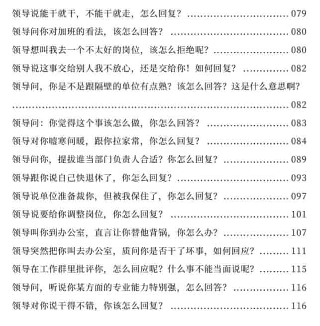 本书针对职场中领导常提出的棘手问题,提供专业应答策略与话术模板,帮助员工既维护自身权益又不失专业风度,掌握与领导沟通的高情商技巧,从容应对各种职场考验。