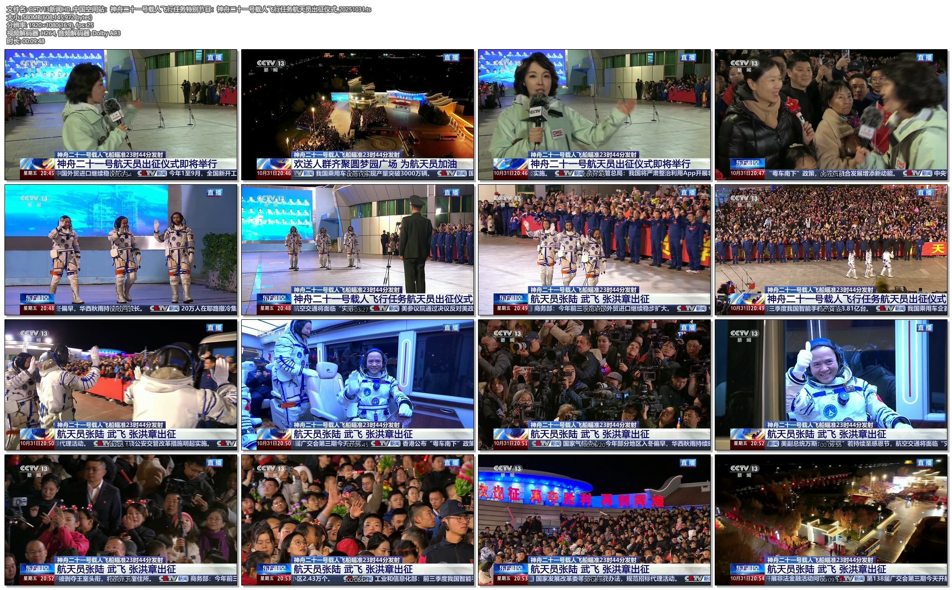 [CCTV13_中国空间站——神舟二十一号载人飞行任务特别节目——神舟二十一号载人飞行任务航天员出征仪式 20251031][1080I/TS][7.01G]