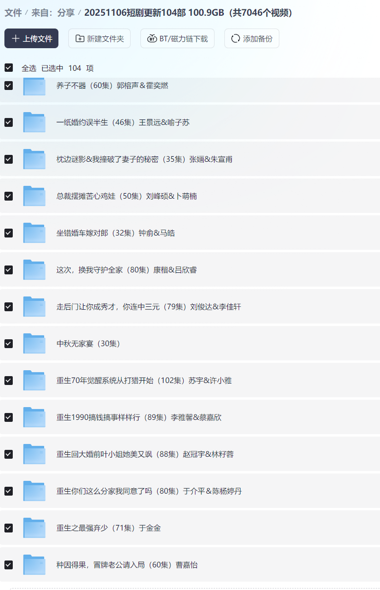 【短剧】20251106短剧更新104部 100.9GB(共7046个视频)