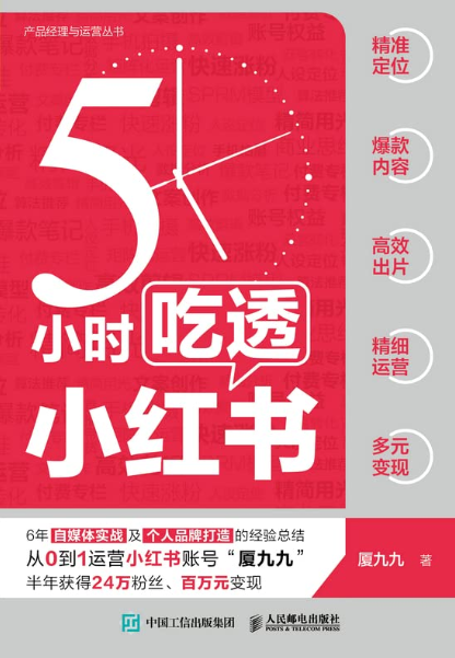 《5小时吃透小红书》厦九九 人民邮电出版社 快速涨粉攻略及账号运营规划【pdf】【53MB】